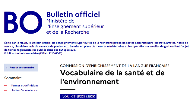 Vocabulaire de la santé et de l'environnement | enseignementsup-recherche.gouv.fr